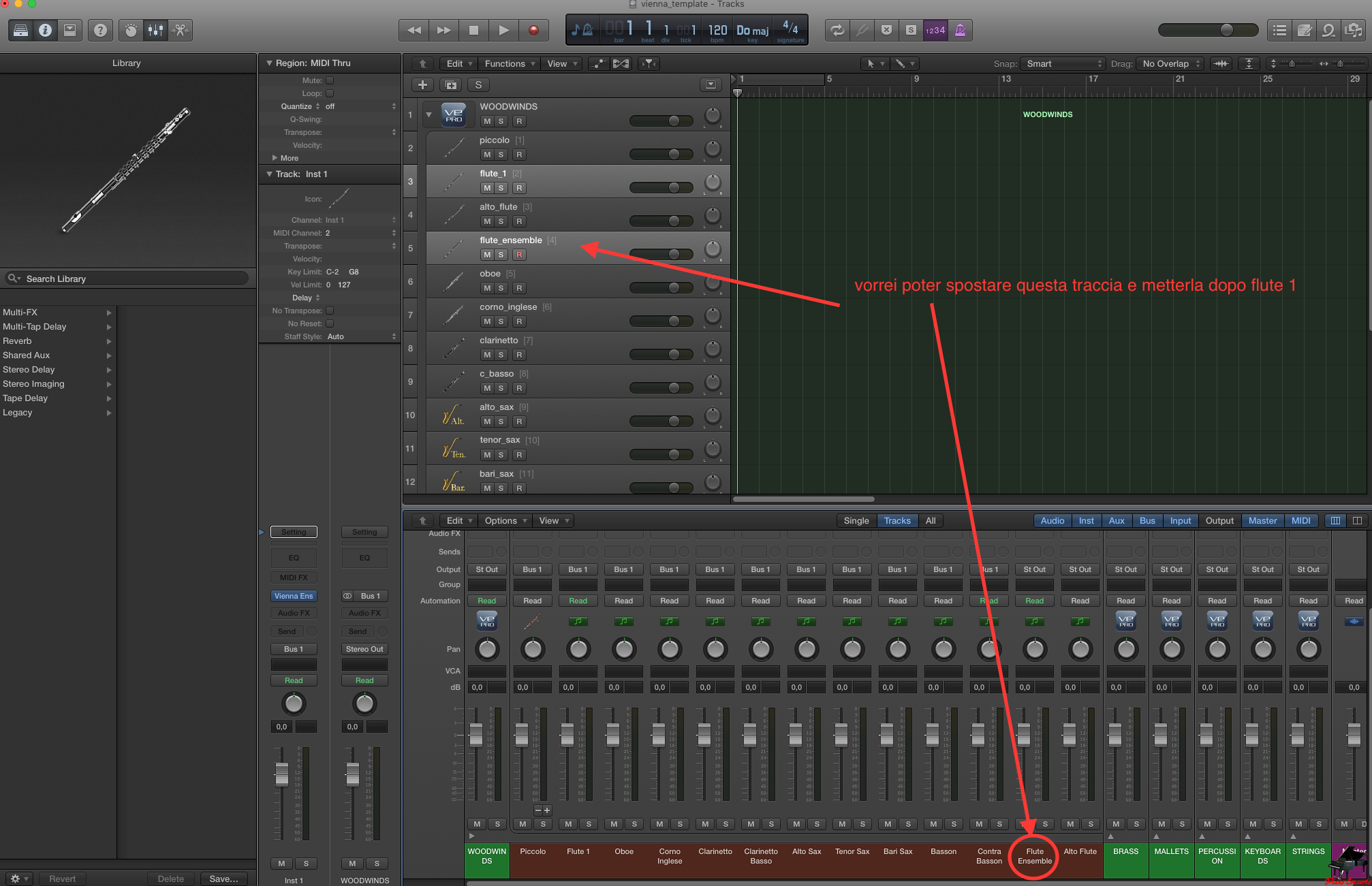 jenn Posted March 2, 2016 Author Report Share Posted March 2, 2016 Mi mandi uno screen per capire cosa devi fare e qual'è il problema ? Devi spostare gli AUX o i channel strip ? Comunque per effettuare spostamenti devi per forza farlo dalla finestra di arrange. Sul mixer non c'è modo di spostare nulla. Se vuoi spostare i channel strip questi sono già nella finestra di arrange, quindi ti basta spostarli da lì. Se devi spostare gli aux devi fare in modo che compaiano nella finestra di arrange. Puoi selezionarne individualmente uno oppure tutti, poi clicchi col tasto destro su uno di questi nella finestra del mixer e selezioni "Create arrange track" mi sembra una cosa del genere, non ricordo a perfezione il nome dell'elemento del menu. A questo punto ti compaiono le tracce AUX selezionate nella finestra di arrange e puoi trattarle come i channel strip spostandoli dove ti fa più comodo. In realtà comunque, in nessun progetto ho mai avuto la necessità di spostare degli aux. Fammi sapere se questa risposta ti basta, altrimenti mandami un video perché non è chiaro cosa vuoi riorganizzare, premesso che nel messaggio iniziale hai chiesto come si spostassero i Channel Strip, non gli AUX. Ciao e grazie per le informazioni Ti allego uno screenshot per renderti più chiaro il mio problema. Io vorrei sostanzialmente cambiare la posizione di una traccia AUX alla quale ho applicato un channel strip. Dal mixer è praticamente impossibile e questo l'ho capito ma nemmeno seguendo i tuoi consigli riesco a farlo! Probabilmente mi sfugge qualche cosa http://www.pianoconcerto.it/forum/uploads/images/pianoconcerto_1456945920__vienna_ensemble.png Quote Link to comment Share on other sites More sharing options...