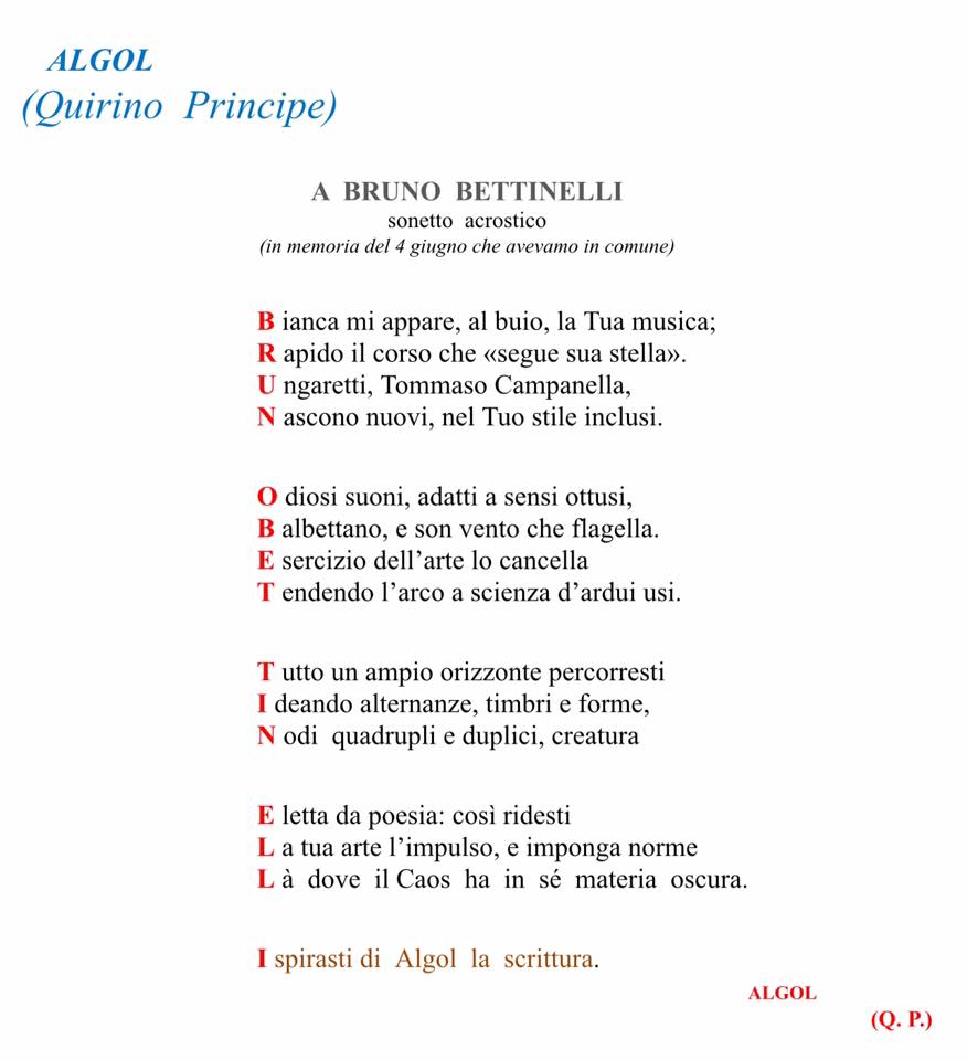 Eagle Posted October 28, 2016 Report Share Posted October 28, 2016 Condivido questo sonetto acrostico del Prof. Quirino Principe, dedicato al Maestro Bruno Bettinelli. Quote Link to comment Share on other sites More sharing options...